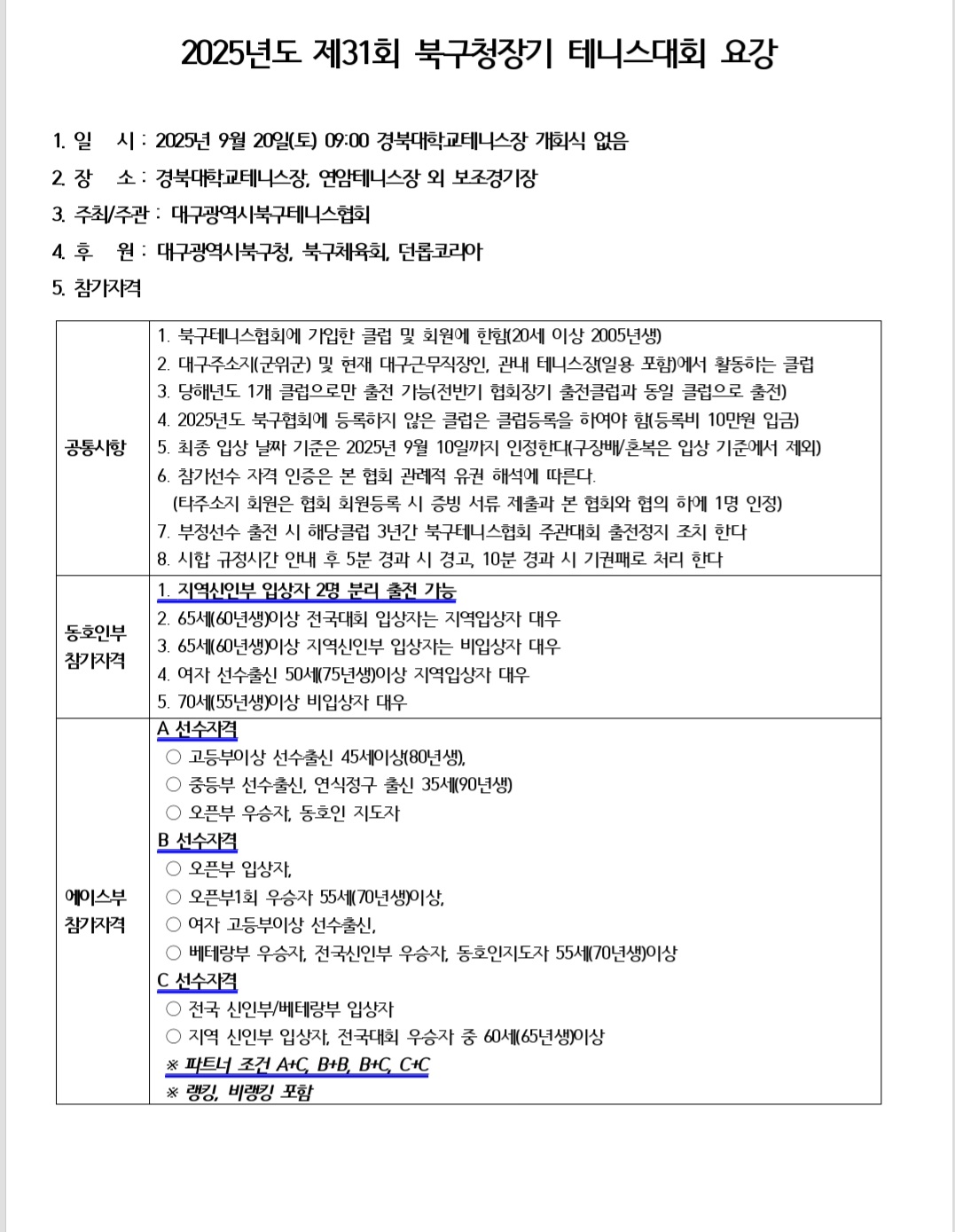 2025³âµµ Á¦31ȸ ºÏ±¸Ã»Àå±â Å״Ͻº´ëȸ ¿ä°­