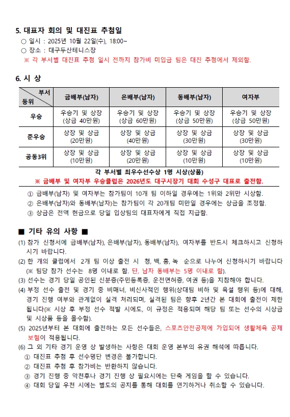 243 2025³â ´ë±¸µ¿±¸ÇùȸÀå¹è »ýȰüÀ° Å״Ͻº ´ëȸ ÃÖ°í°ü¸®ÀÚ 05-25 9082