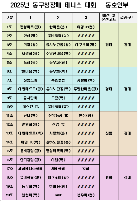 2025³â µ¿±¸Ã»Àå¹è Å״Ͻº´ëȸ ¿¹¼± ´ëÁøÇ¥ ¹× °æ±âÀå ¾È³»µå¸³´Ï´Ù.