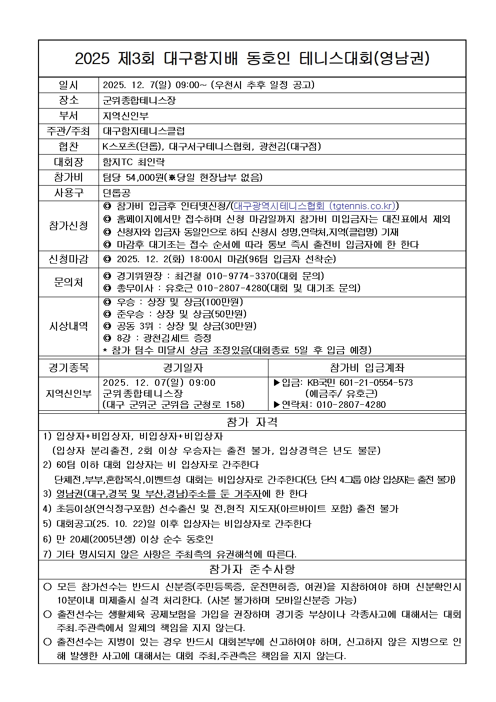2025 ºÏ±¸ÇùȸÀå±â Àü±¹µ¿È£ÀÎÅ״Ͻº´ëȸ °³³ª¸®ºÎ °á°ú
