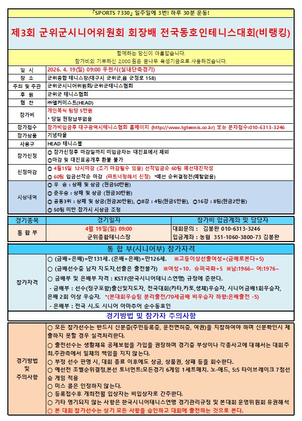 2026. 4. 19(ÀÏ) 09:00±ºÀ§Á¾ÇÕÅ״ϽºÀå¿¡¼ Á¦3ȸ ½Ã´Ï¾î´ëȸ¸¦ °³ÃÖ ÇÕ´Ï´Ù.¸¹ÀÌµé ³î·¯ ¿À¼Å¿ä... °¨»çÇÕ´Ï´Ù. [ÀÌ °Ô½Ã¹°Àº »ç¹«±¹´Ô¿¡ ÀÇÇØ 2026-03-17 13:59:40 ÀÚÀ¯°Ô½ÃÆÇ¿¡¼ À̵¿ µÊ]